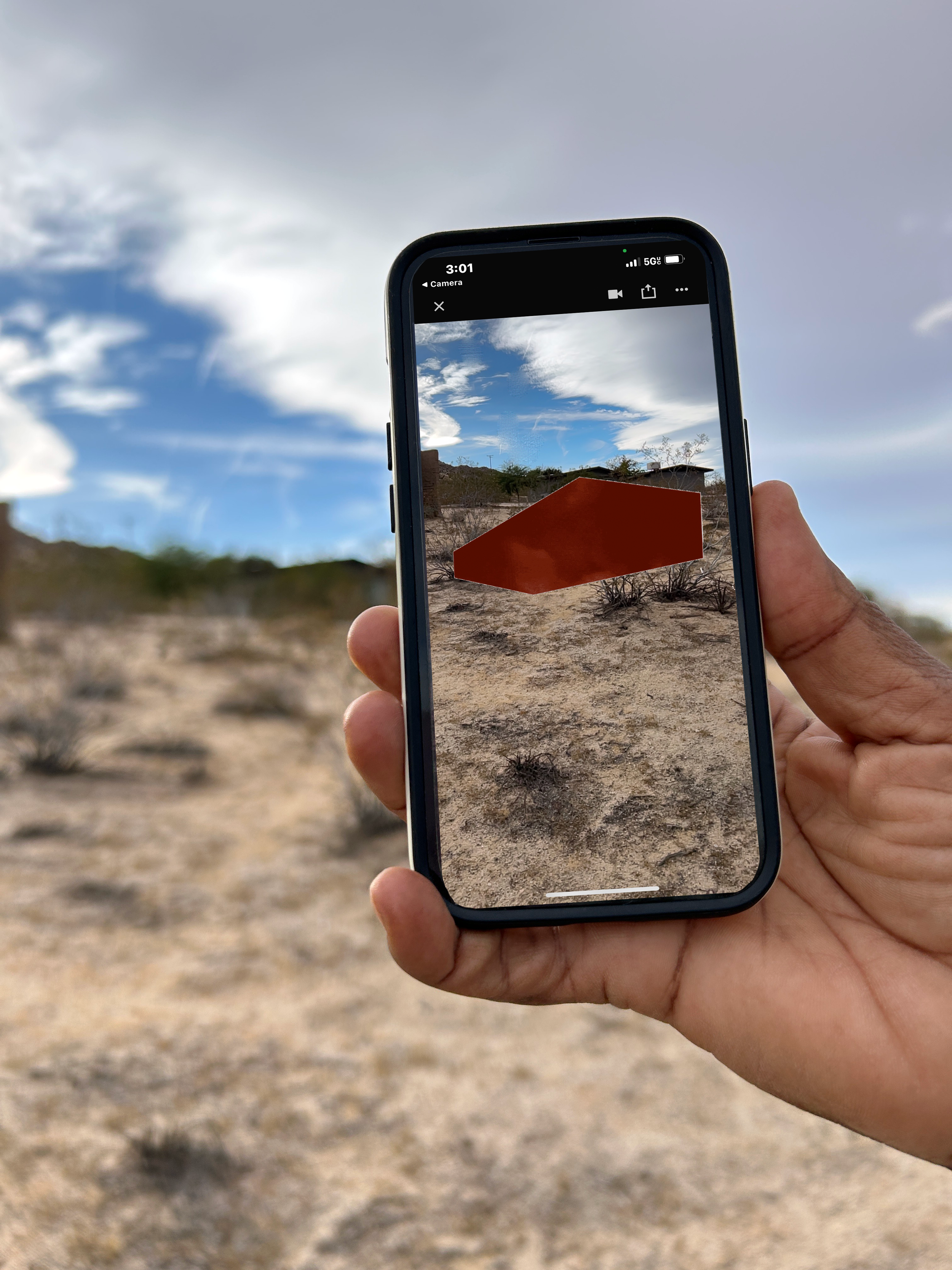 Anchors is a GPS app that engages sight, sound, and smell through technology and the embodied experience of place. An app displays animated floating objects on visitors’ cell phones while on location at the BoxoPROJECTS. Participants discover four shapes floating in the landscape, bringing spirits, ghosts, specters of the past, into the present. Four “holding stations,” present small vessels that invite visitors to smell. Each has a pleasing scent to convey safety. When participants point their cell phones toward the coordinates, the floating objects come into view, each emitting a specific sound. Anchor develops from a series of drawings titled Out of Body about the artist’s anxiety about social upheaval. The work pays tribute to those who have suffered and persevered and connects with those currently struggling, turning the past into a foundation of strength for the future.